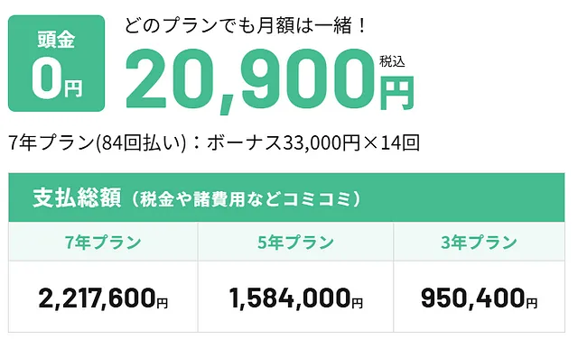 月々20,900円(税込み)×84回