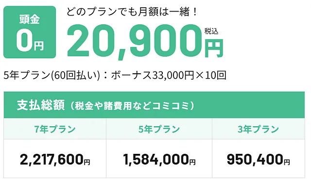 月々20,900円(税込み)×60回
