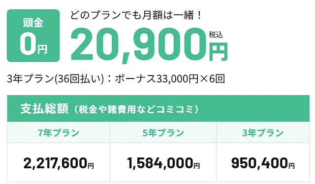 月々20,900円(税込み)×36回