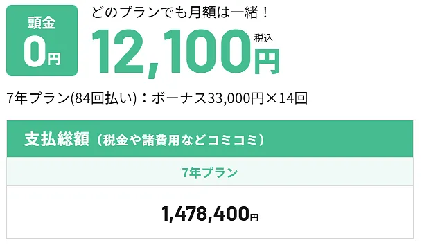 月々12,100円(税込み)×84回